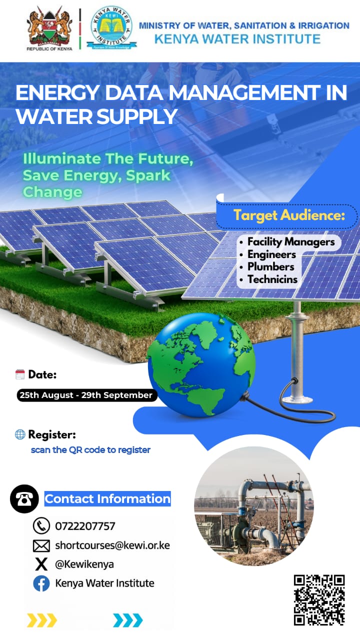 The institute appreciates the important role that the personnel in the water sector play in order to achieve gradual realization of the universal access to water and sanitation and therefore has placed short courses for all levels and categories of personnel, from lowest ranking officers to the highest. The short courses cater also to personnel in the Ministry of Water Sanitation and Irrigation and other related ministries, Water Service Providers, Water Works Development Agencies, Water Services Regulatory Board, Water Resources Users Association, Basin Water Resources Committees and all other institutions established under Water Act 2016, County Governments water departments. Trainees from the private sector, non-Governmental organizations and foreign countries are also welcome at the Institute.